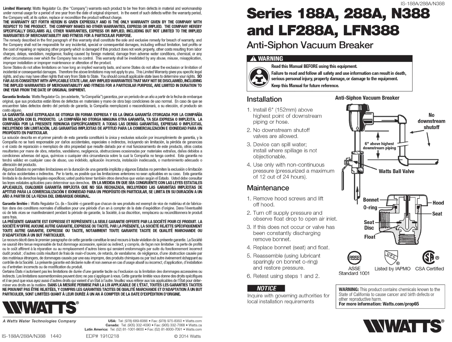 Lies die bedienungsanleitung für Watts LF288A (2 Seiten) kostenlos online; sie gehört zur Kategorie Nicht kategorisiert. Dieses Handbuch wurde von 7 Personen als hilfreich bewertet und erhielt im Schnitt 3.6 Sterne aus 4 Bewertungen. Hast du eine Frage zu Watts LF288A oder möchtest du andere Nutzer dieses Produkts befragen? Stelle eine Frage