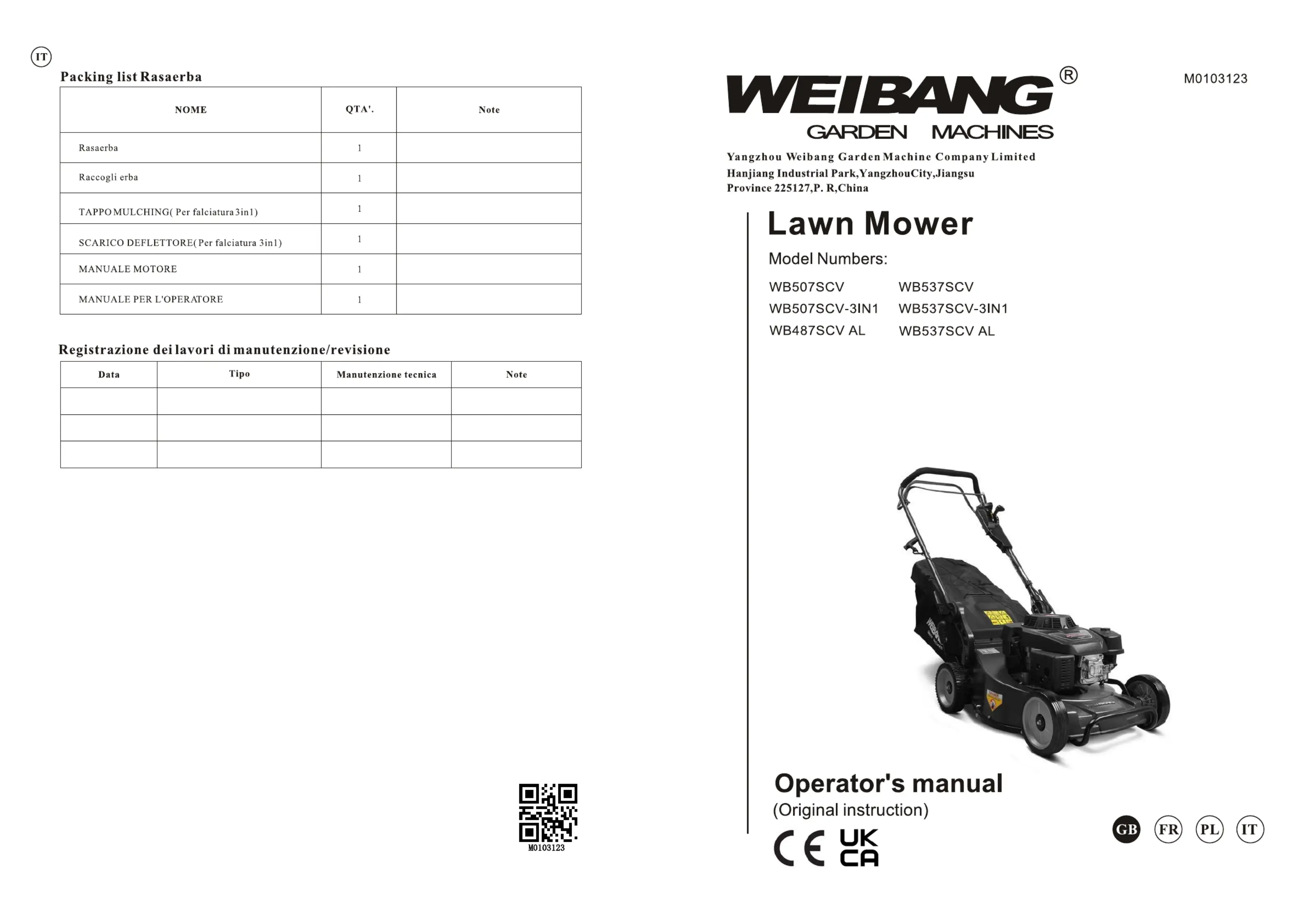 Bedienungsanleitung Rasenmäher Weibang