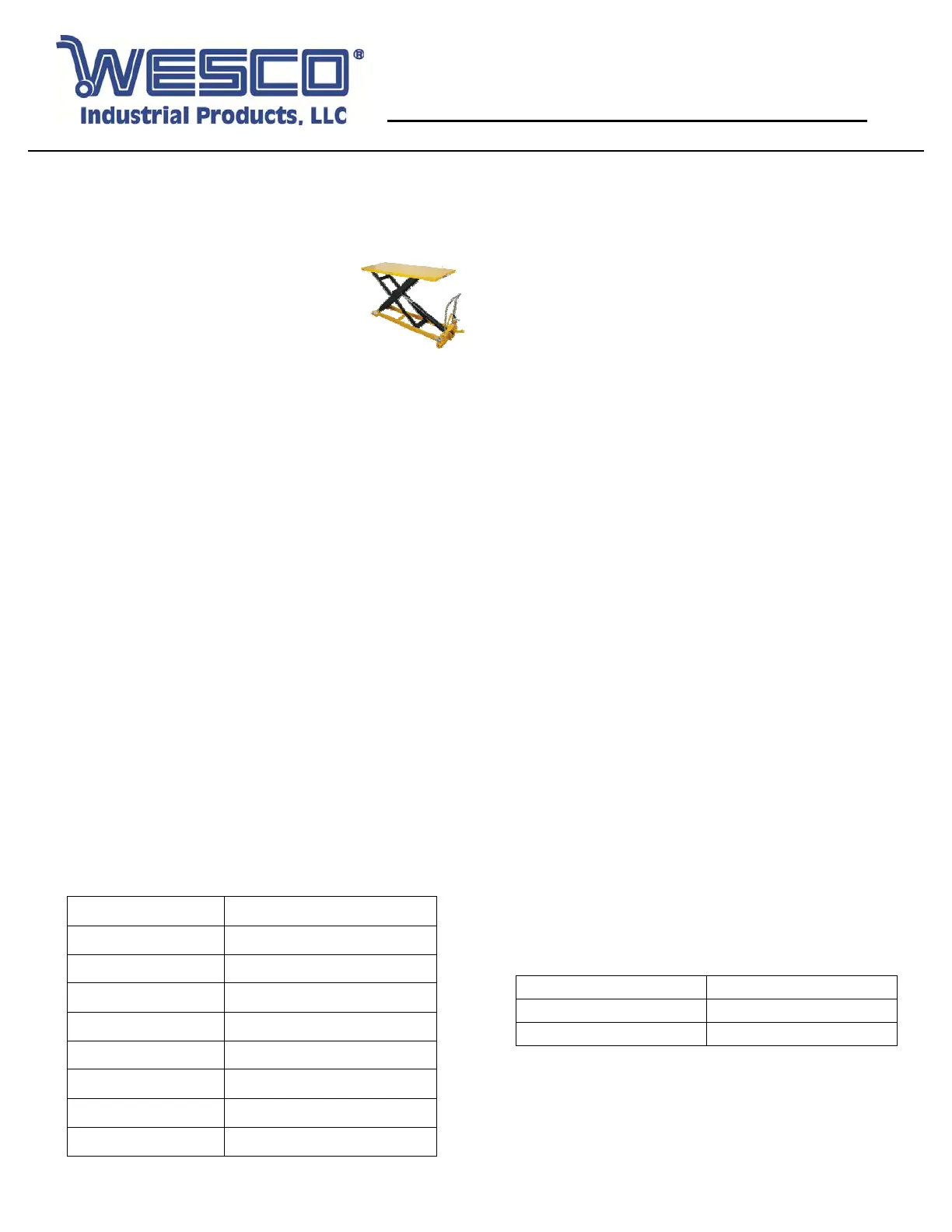 Thank you for purchasing a Wesco Long Deck Scissors Lift