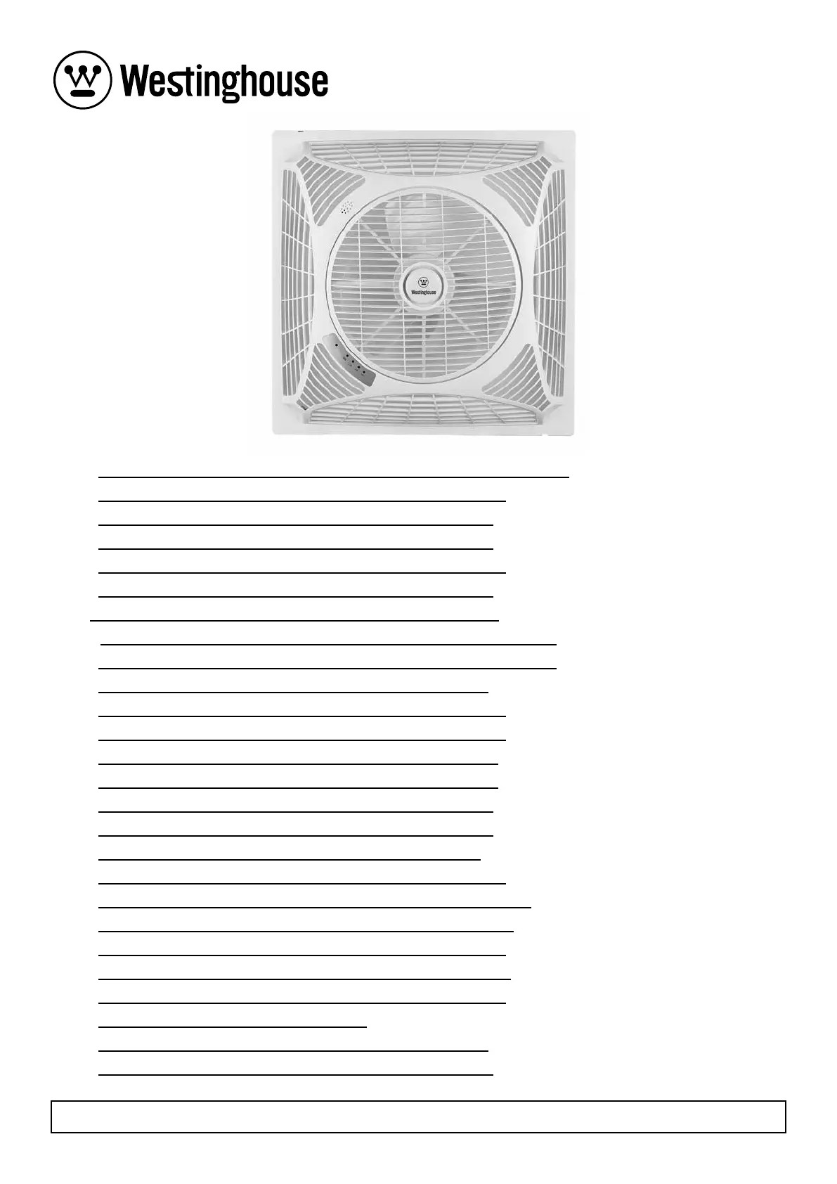 Bedienungsanleitung Ventilator Westinghouse