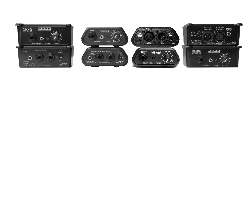 Top) are stereo units with unbalanced line level inputs via ¼” or 3.5mm TRS jacks. The HAUCxl and HATTxl are mono headphone