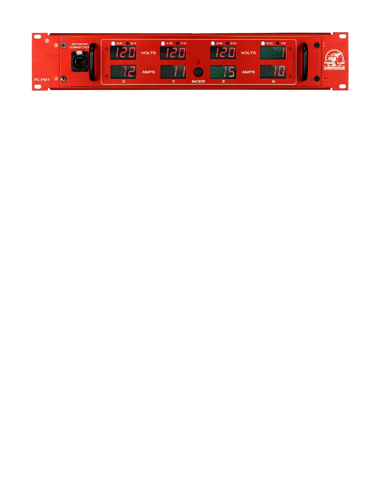 The Whirlwind PL-PM1/PL-PM1RJ Power Meter is intended to monitor 3 phase Y power with three 120 Volt AC legs or