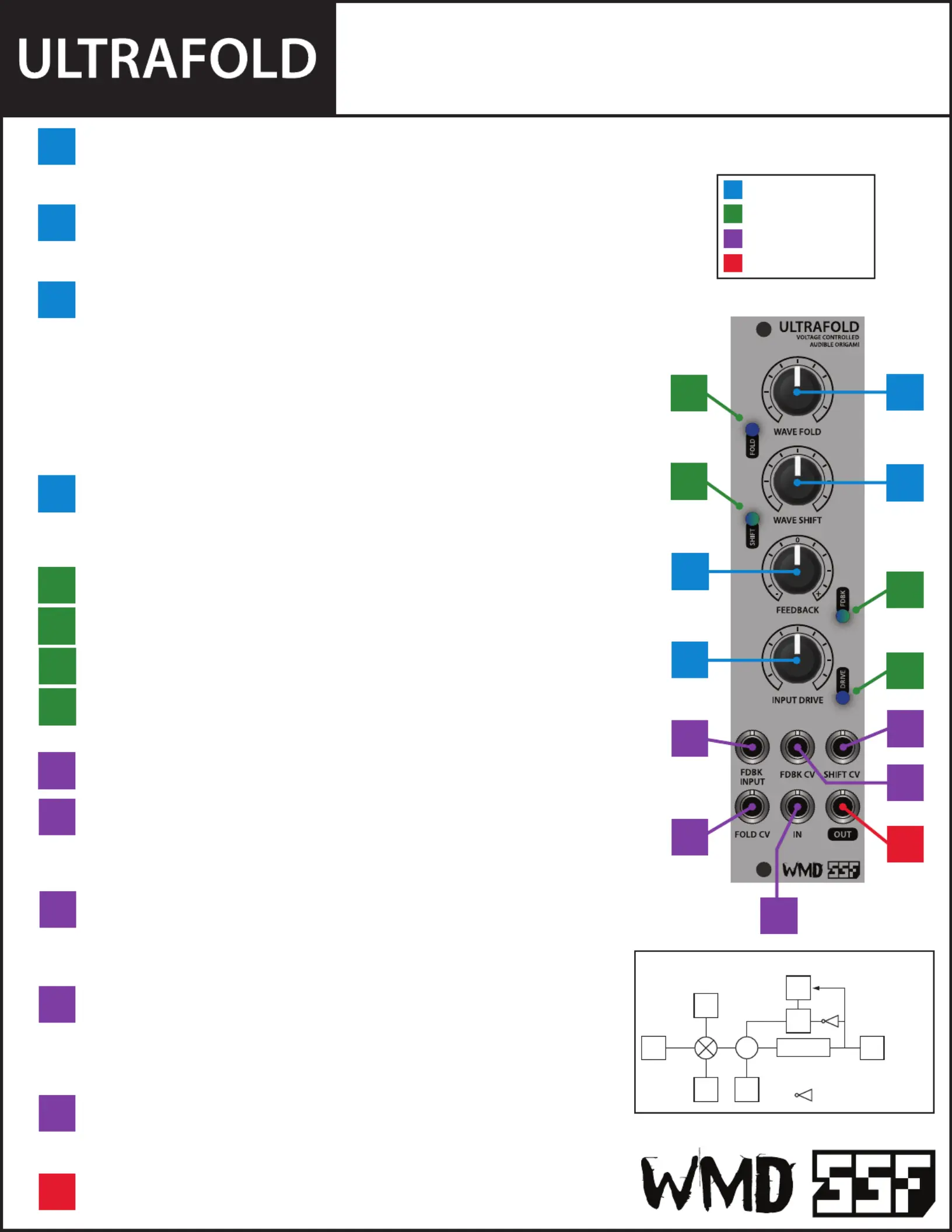 ULTRAFOLD is a powerful voltage controlled wave folder. The input drive and wave fold controls make up the