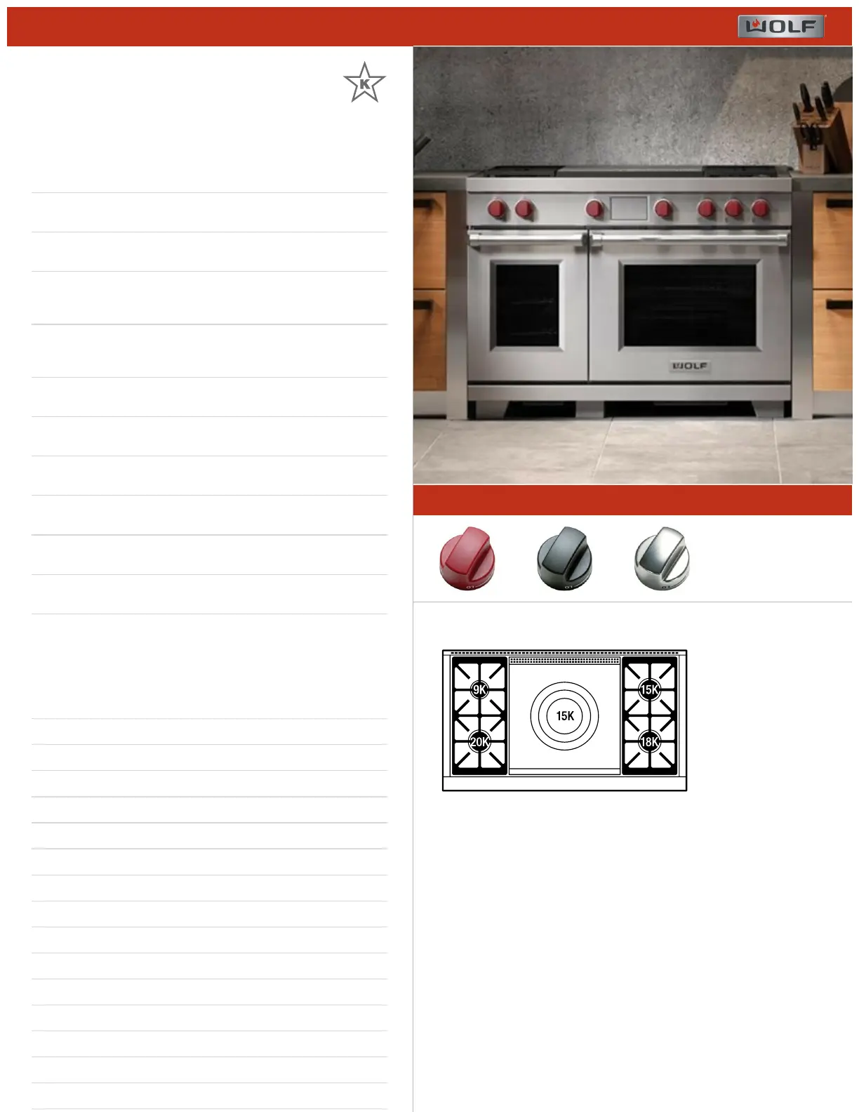 RANGETOP SPECIFICATIONS