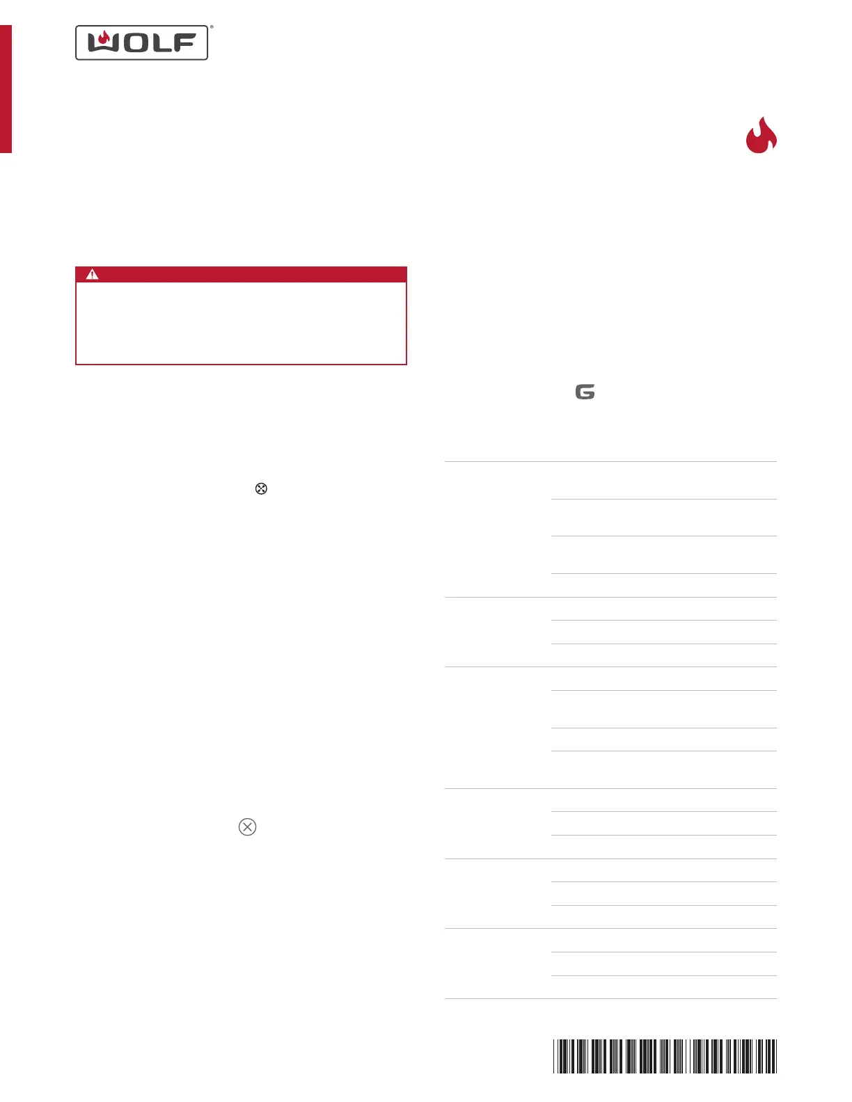 nance of your Wolf range, refer to the use and care guide.