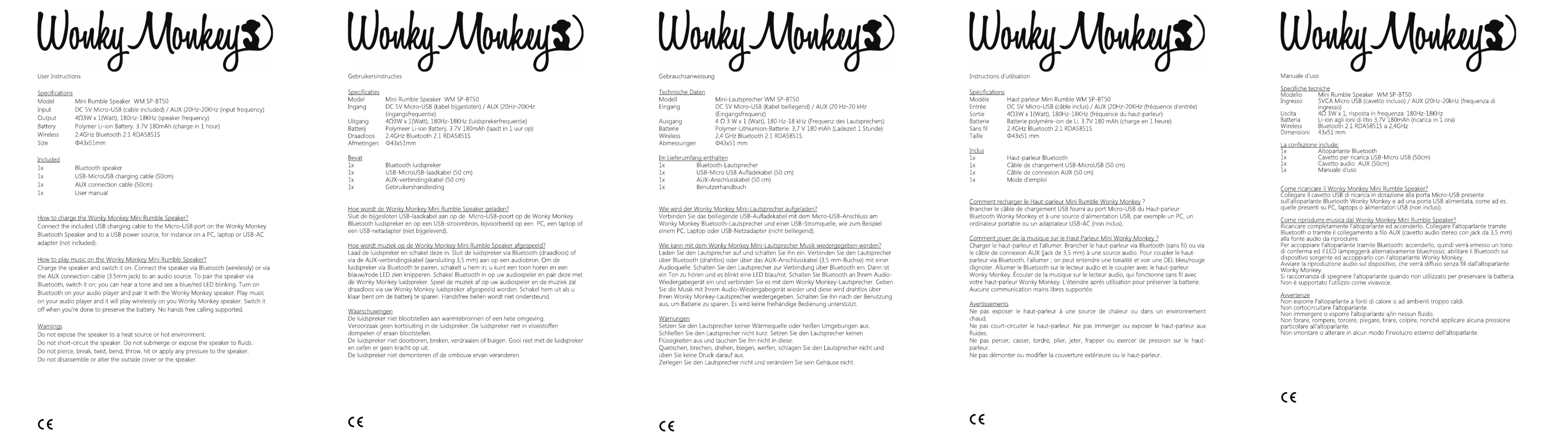 Lies die bedienungsanleitung für Wonky Monkey WM SP-BT50 Rumble Mini (2 Seiten) kostenlos online; sie gehört zur Kategorie Lautsprecher. Dieses Handbuch wurde von 40 Personen als hilfreich bewertet und erhielt im Schnitt 4.1 Sterne aus 9 Bewertungen. Hast du eine Frage zu Wonky Monkey WM SP-BT50 Rumble Mini oder möchtest du andere Nutzer dieses Produkts befragen? Stelle eine Frage