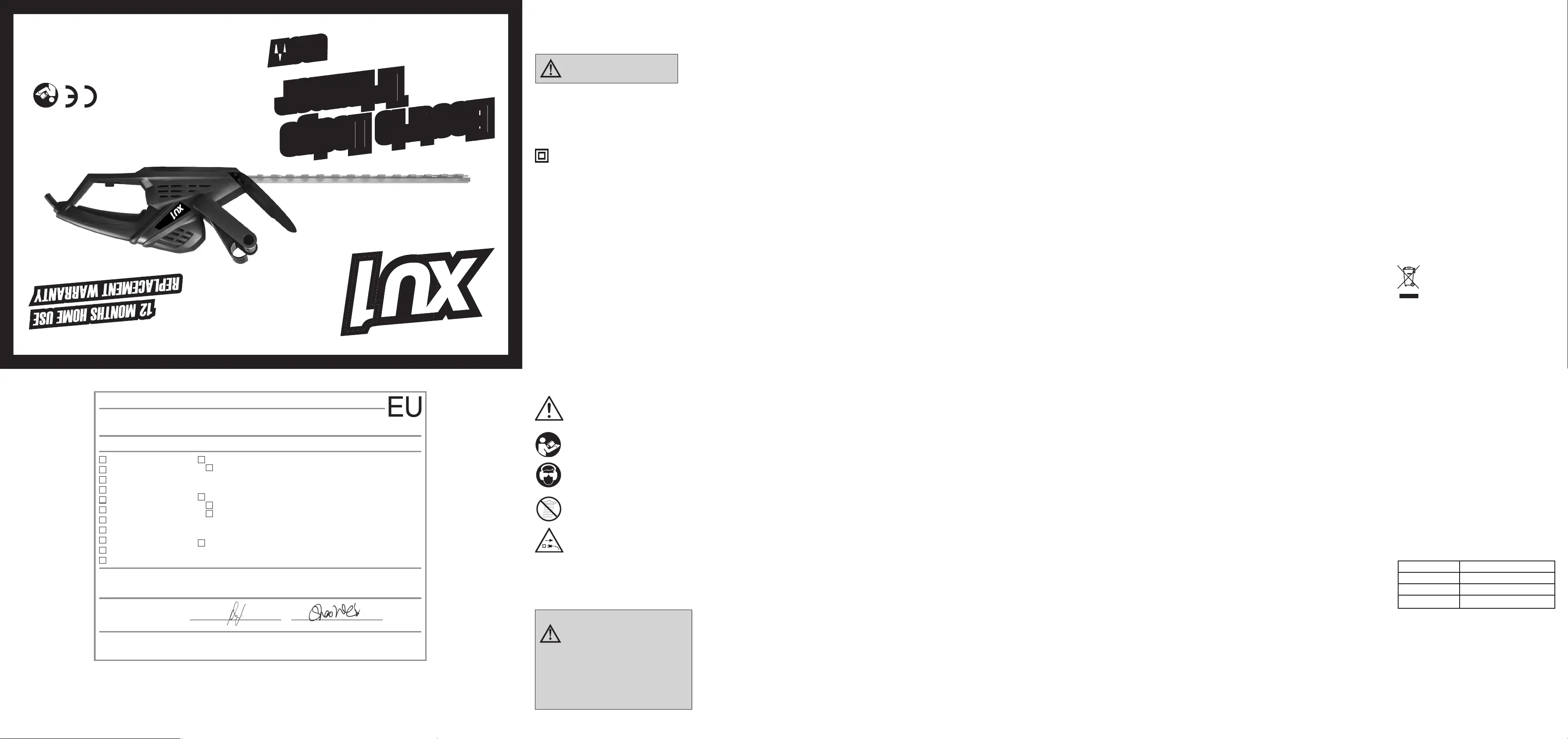 Bedienungsanleitung Heckenschere XU1