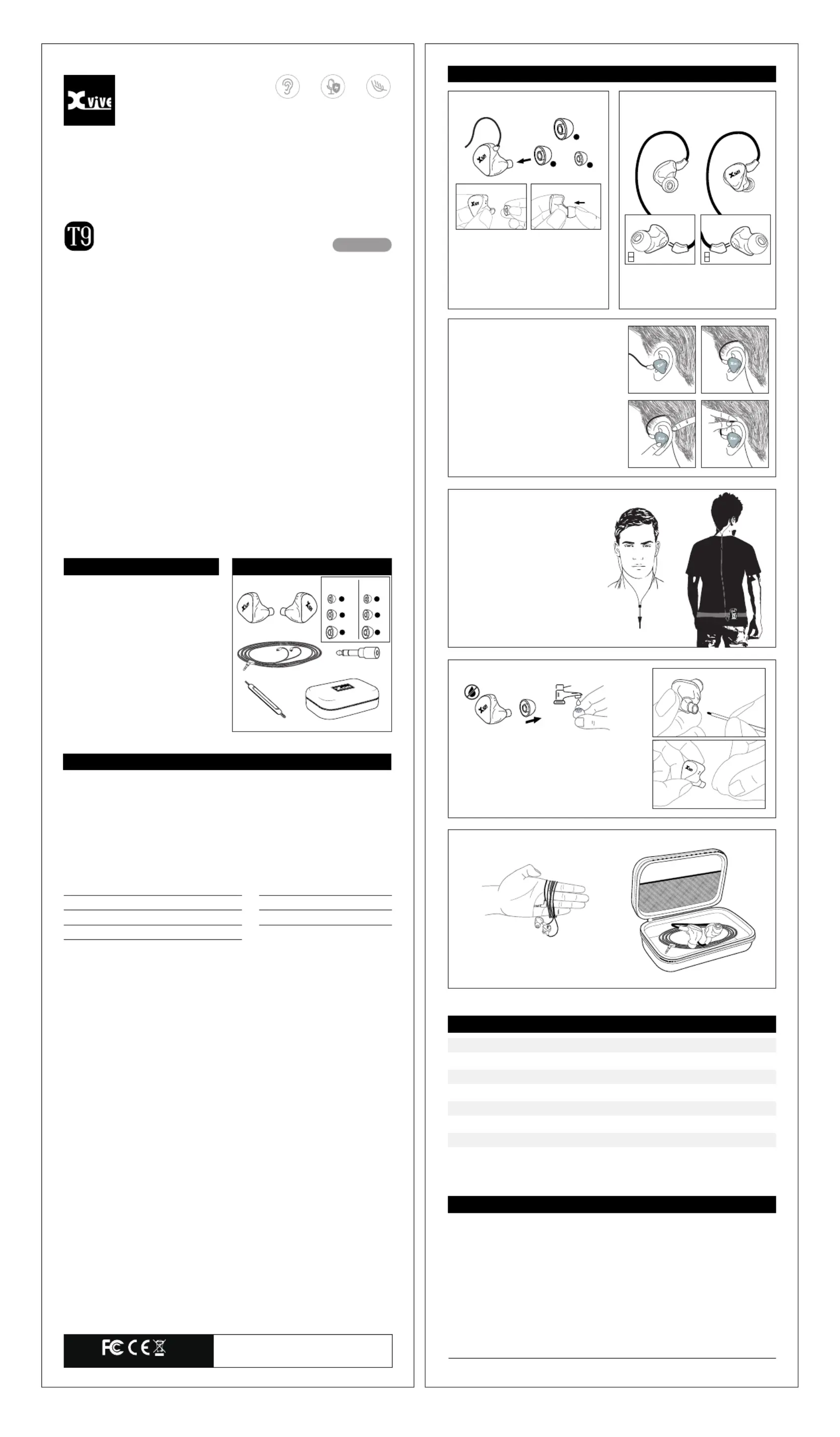 Lies die bedienungsanleitung für Xvive T9 (12 Seiten) kostenlos online; sie gehört zur Kategorie Ohrhörer. Dieses Handbuch wurde von 49 Personen als hilfreich bewertet und erhielt im Schnitt 4.5 Sterne aus 7 Bewertungen. Hast du eine Frage zu Xvive T9 oder möchtest du andere Nutzer dieses Produkts befragen? Stelle eine Frage