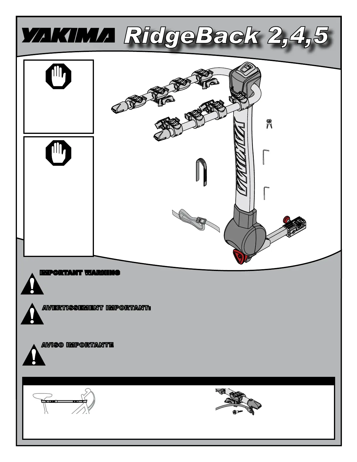 IT IS CRITICAL THAT ALL YAKIMA RACKS AND ACCESSORIES BE PROPERLY AND SECURELY ATTACHED TO YOUR VEHICLE. IMPROPER ATTACHMENT COULD RESULT IN AN AUTOMOBILE