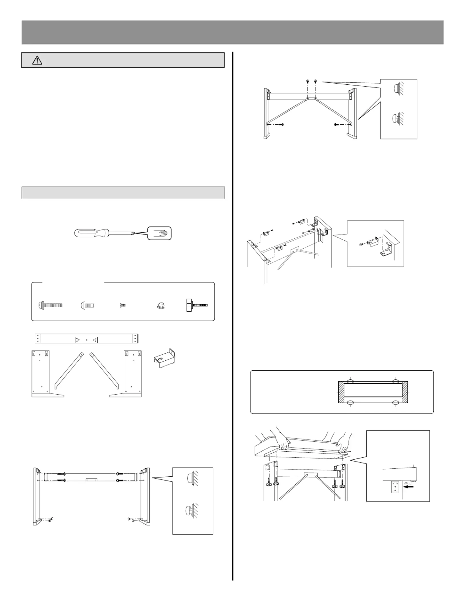 • Be sure to tighten up all screws upon completing assembly of