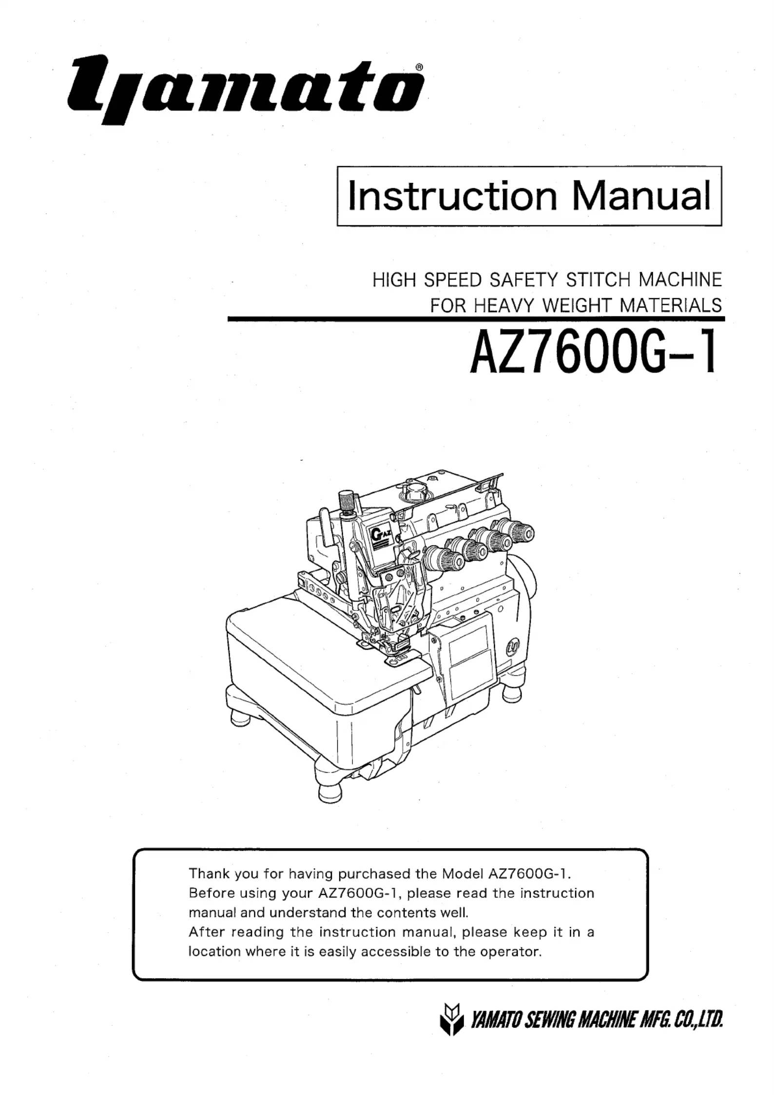 Lies die bedienungsanleitung für Yamato AZ7600G-1 (45 Seiten) kostenlos online; sie gehört zur Kategorie Nähmaschine. Dieses Handbuch wurde von 49 Personen als hilfreich bewertet und erhielt im Schnitt 5.0 Sterne aus 25 Bewertungen. Hast du eine Frage zu Yamato AZ7600G-1 oder möchtest du andere Nutzer dieses Produkts befragen? Stelle eine Frage