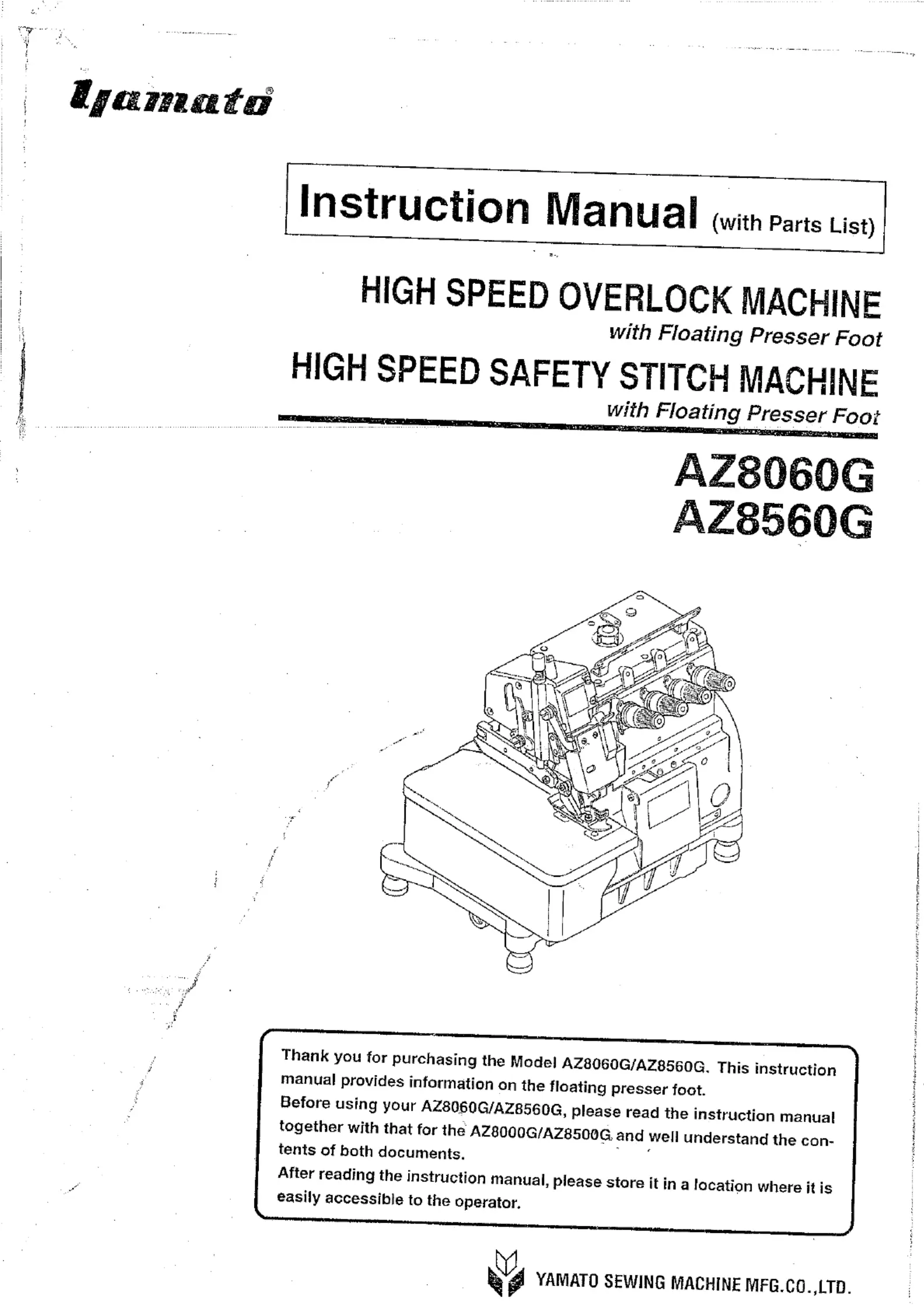 Lies die bedienungsanleitung für Yamato AZ8560 (12 Seiten) kostenlos online; sie gehört zur Kategorie Nähmaschine. Dieses Handbuch wurde von 43 Personen als hilfreich bewertet und erhielt im Schnitt 4.8 Sterne aus 22 Bewertungen. Hast du eine Frage zu Yamato AZ8560 oder möchtest du andere Nutzer dieses Produkts befragen? Stelle eine Frage