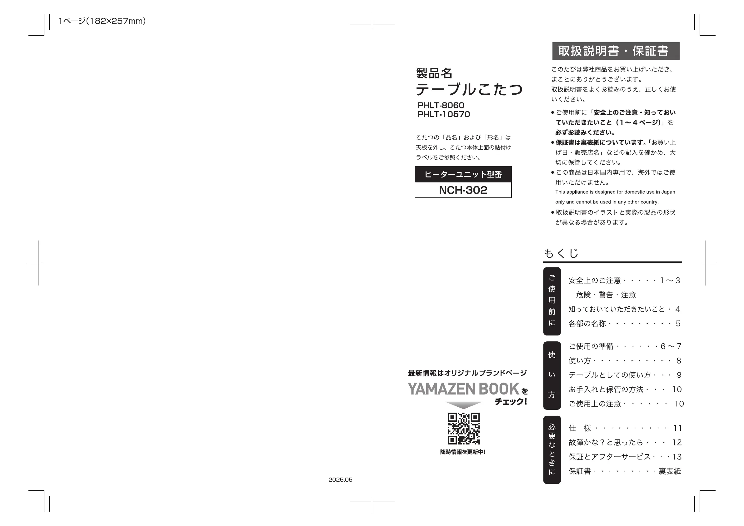 Yamazen PHLT-8060 Bedienungsanleitung