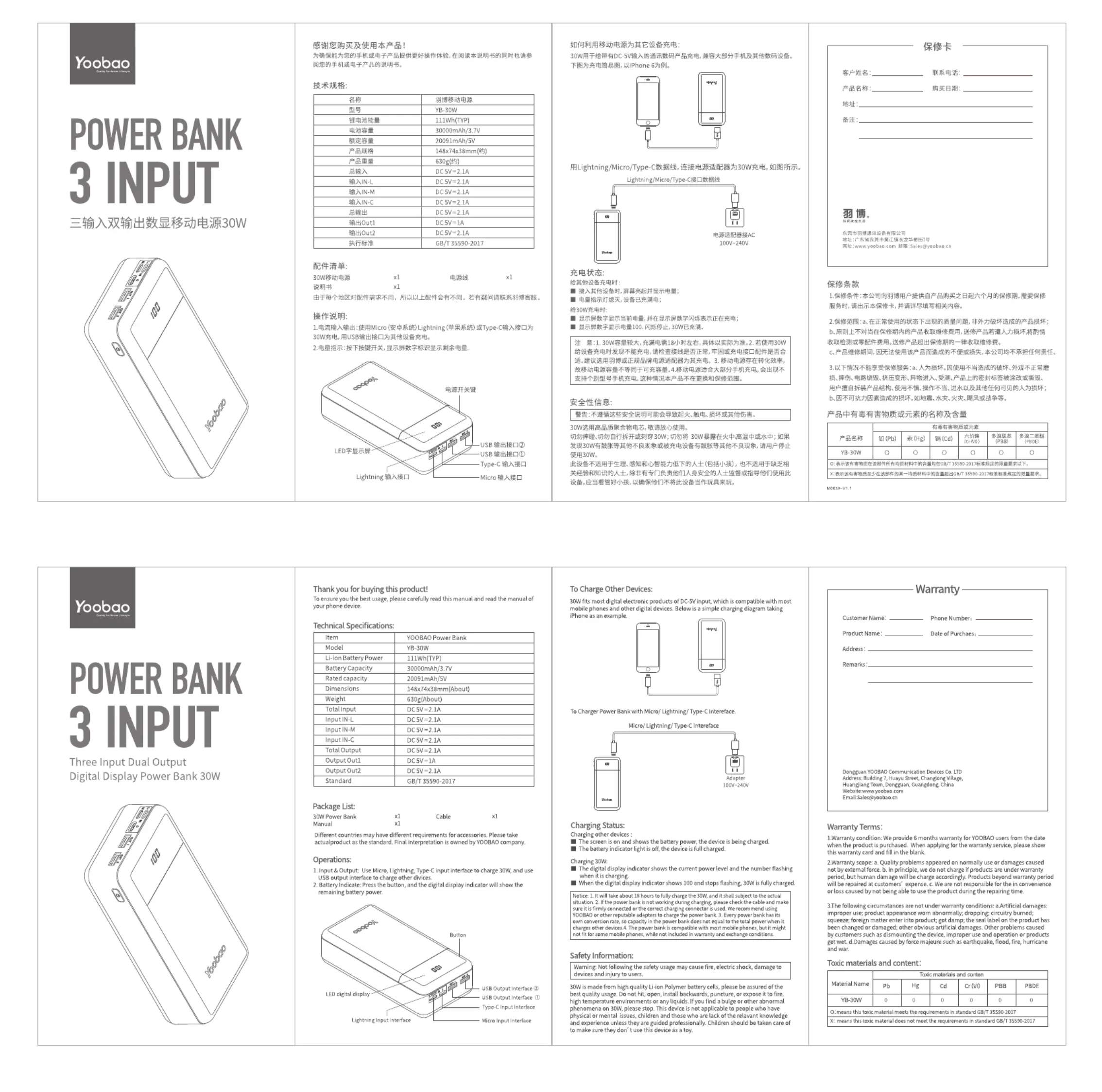 Yoobao YB-30WBK Bedienungsanleitung