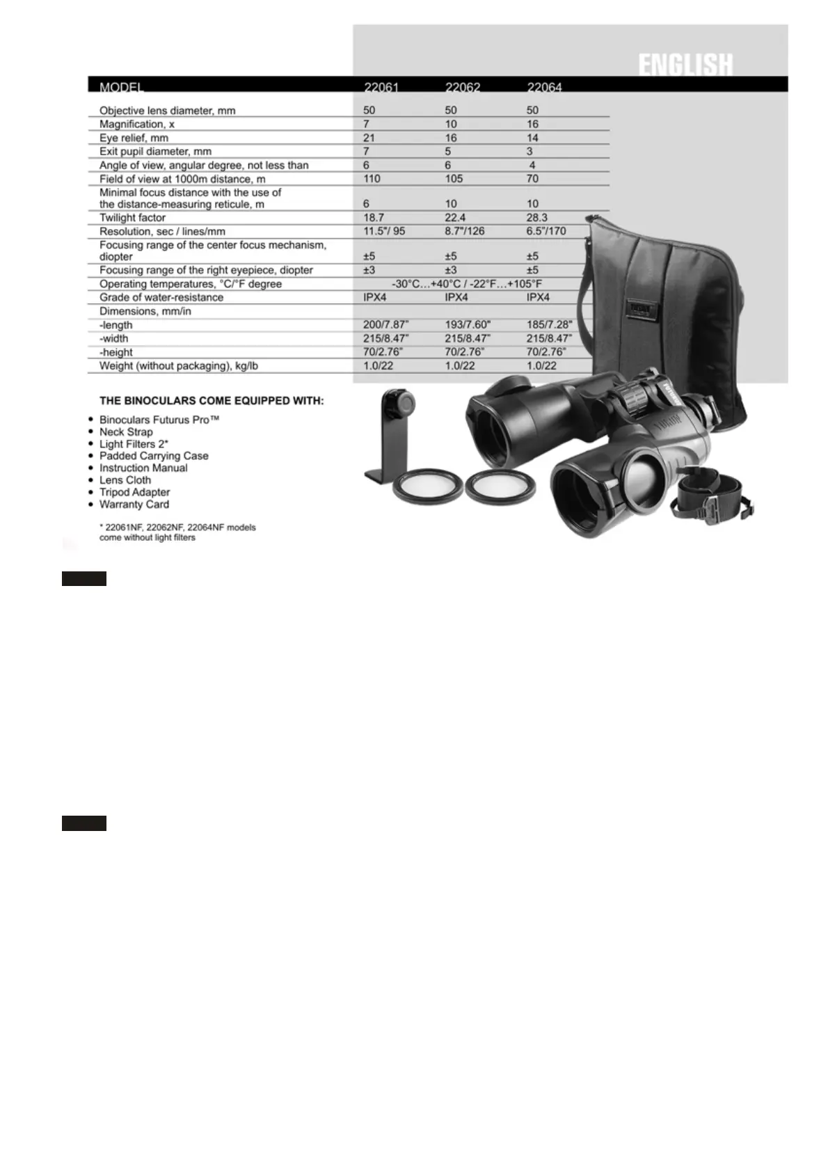 THE BINOCULARS COME EQUIPPED WITH: