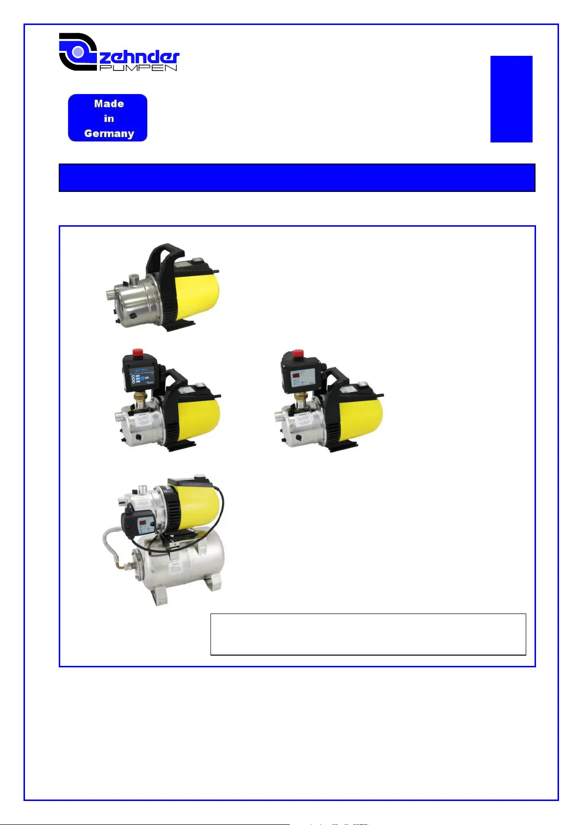 Bedienungsanleitung Wasserpumpe Zehnder Pumpen