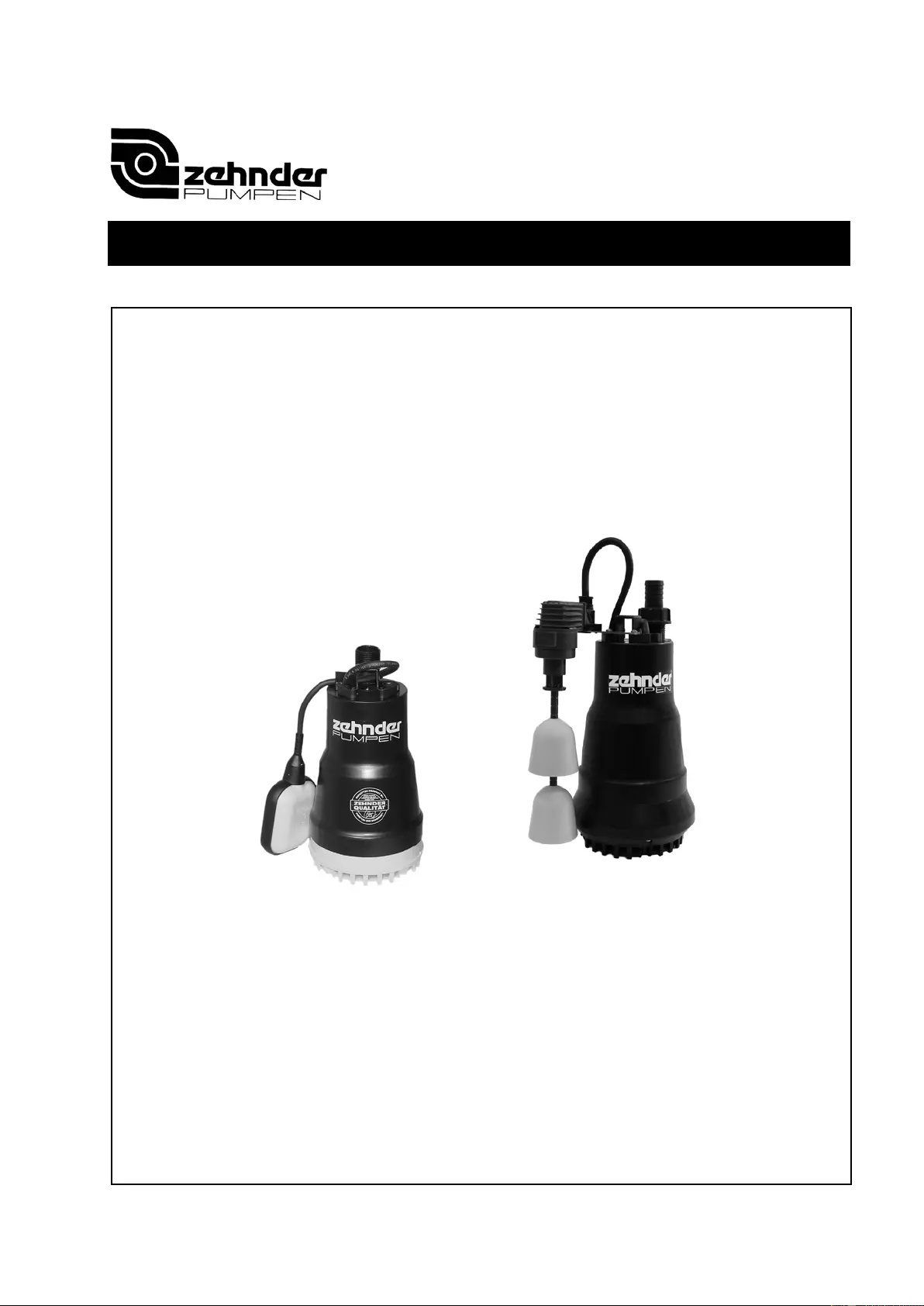 Bedienungsanleitung Wasserpumpe Zehnder Pumpen