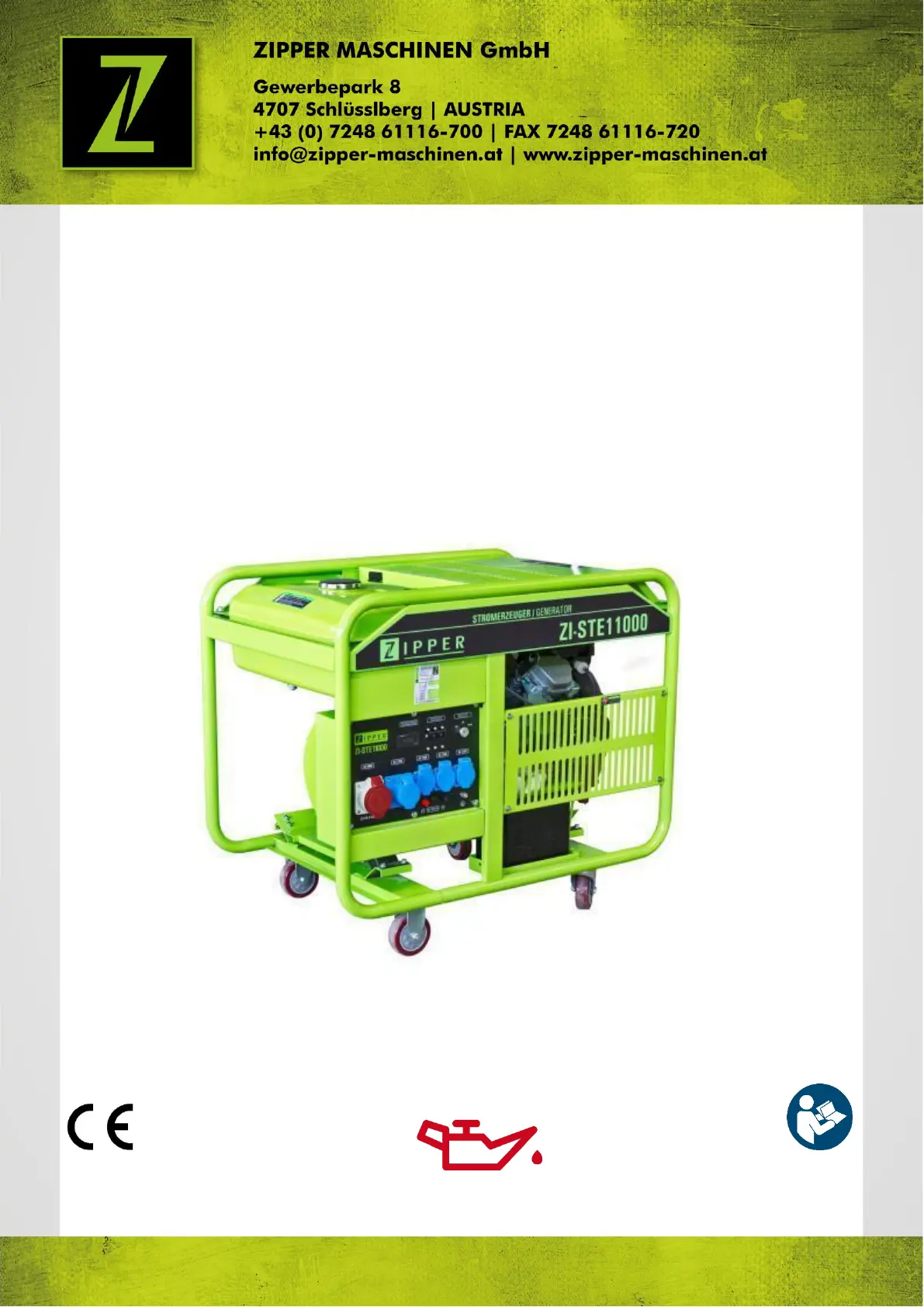 Lies die bedienungsanleitung für Zipper ZI-STE11000 (39 Seiten) kostenlos online; sie gehört zur Kategorie Generator. Dieses Handbuch wurde von 35 Personen als hilfreich bewertet und erhielt im Schnitt 4.6 Sterne aus 18 Bewertungen. Hast du eine Frage zu Zipper ZI-STE11000 oder möchtest du andere Nutzer dieses Produkts befragen? Stelle eine Frage