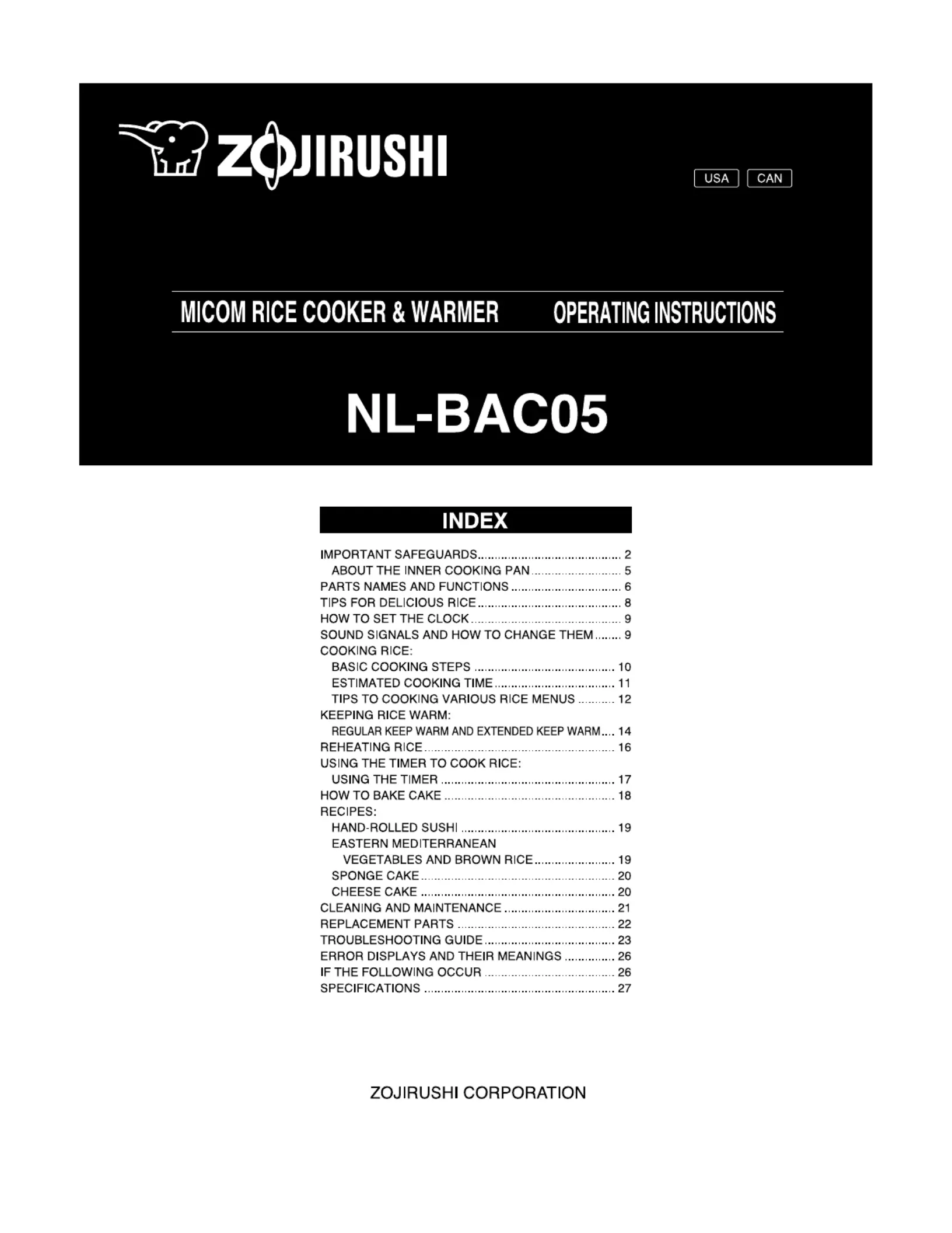 Zojirushi Micom NL-BAC05 Bedienungsanleitung